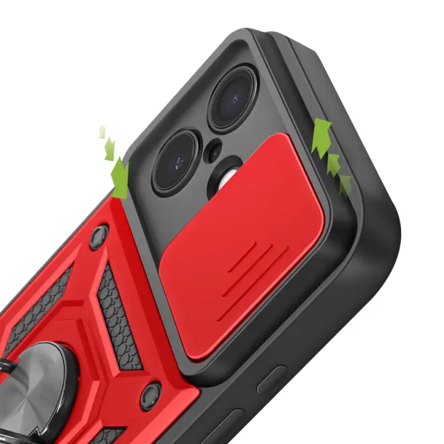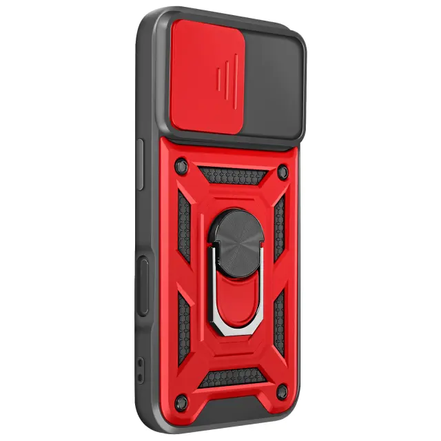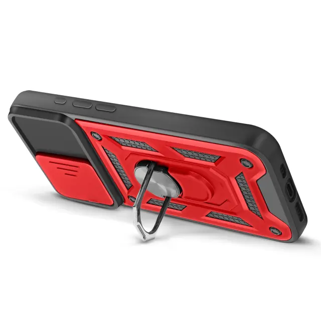 Hibridna zasnova za optimalno absorpcijo vsakodnevnih udarcev. Vojaški certifikat MIL-STD-810G za večjo odpornost proti padcem in udarcem. Vgrajen drsni pokrov kamere za diskretno in učinkovito zaščito objektiva. Večnamenski vrtljivi obroč za boljši oprijem in stabilno podporo gledanju.