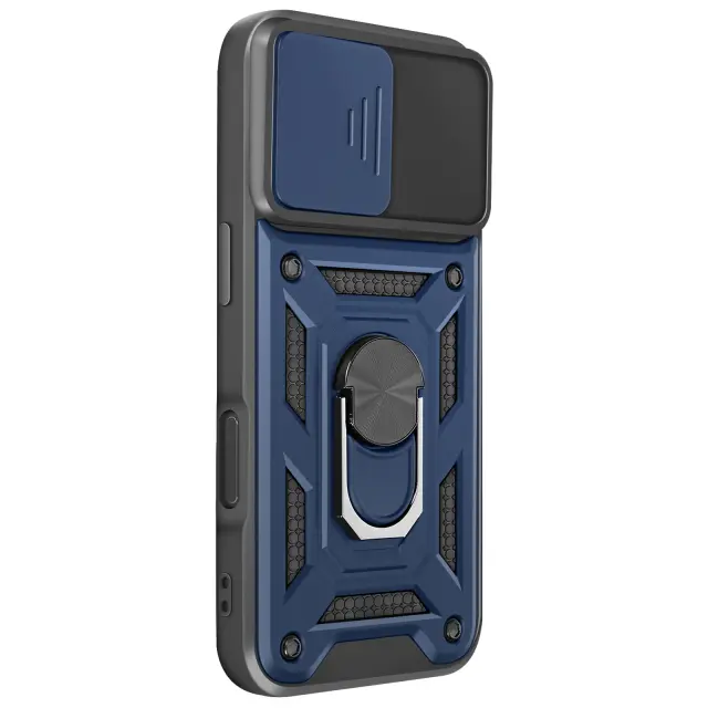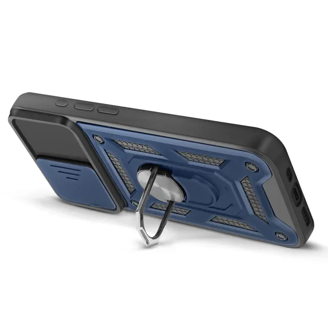 Hibridna zasnova za optimalno absorpcijo vsakodnevnih udarcev. Vojaški certifikat MIL-STD-810G za večjo odpornost proti padcem in udarcem. Vgrajen drsni pokrov kamere za diskretno in učinkovito zaščito objektiva. Večnamenski vrtljivi obroč za boljši oprijem in stabilno podporo gledanju.