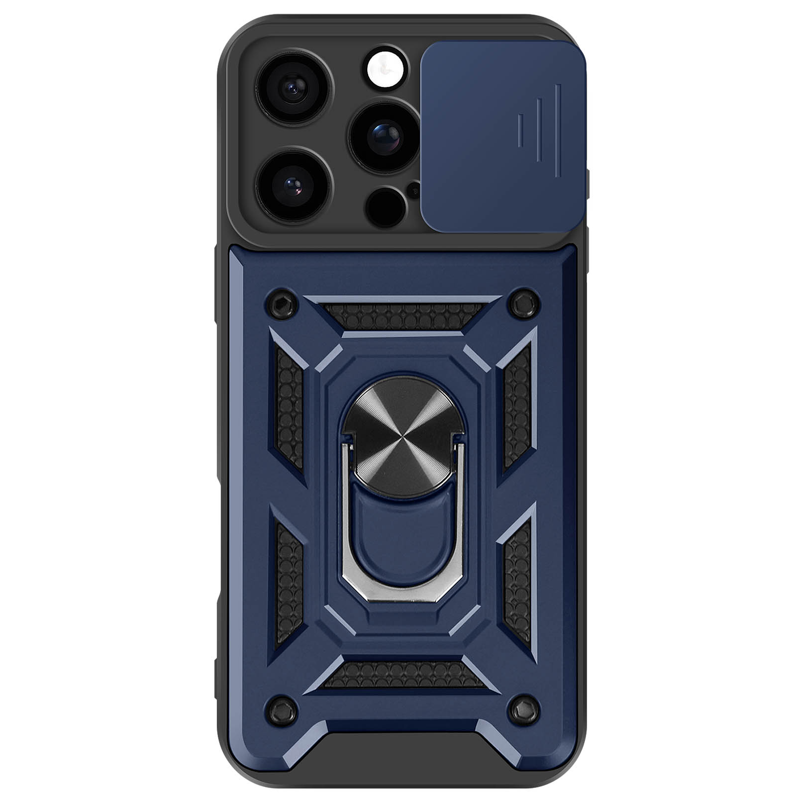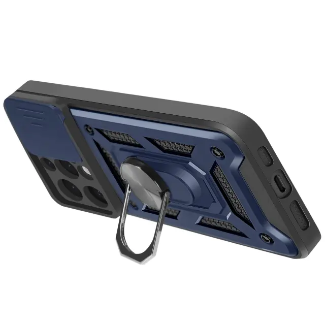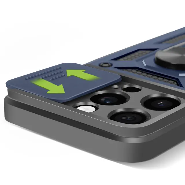 Polnočno modro ohišje iz dvomaterialnega materiala Mayaxess, vrhunska zaščita za vaš iPhone 16 Pro Max. Izdelan je iz togega polikarbonata in prožnega silikonskega gela ter zagotavlja optimalno zaščito pred praskami in udarci.. Testirano po standardu MIL-STD-810G 516.6, kar zagotavlja varno zaščito pred padci. Drsni pokrov kamere za zaščito enote kamere pred praskami in udarci za večjo vzdržljivost.