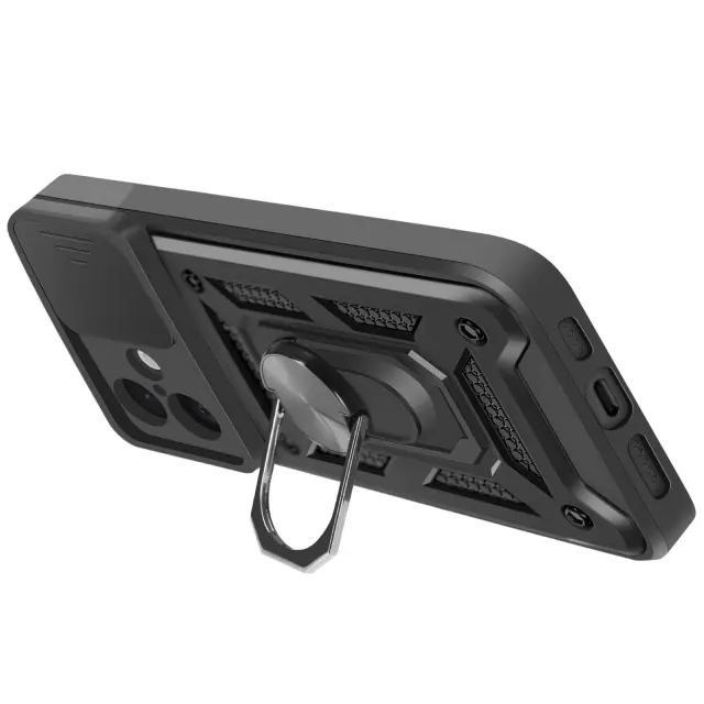 Črno ohišje iz dvomaterialnega materiala Mayaxess, vrhunska zaščita za vaš iPhone 16 Plus. Izdelan je iz togega polikarbonata in prožnega silikonskega gela ter zagotavlja optimalno zaščito pred praskami in udarci.. Testirano po standardu MIL-STD-810G 516.6, kar zagotavlja varno zaščito pred padci. Drsni pokrov kamere za zaščito enote kamere pred praskami in udarci za večjo vzdržljivost.