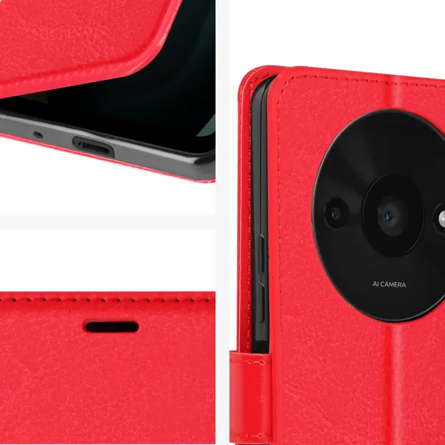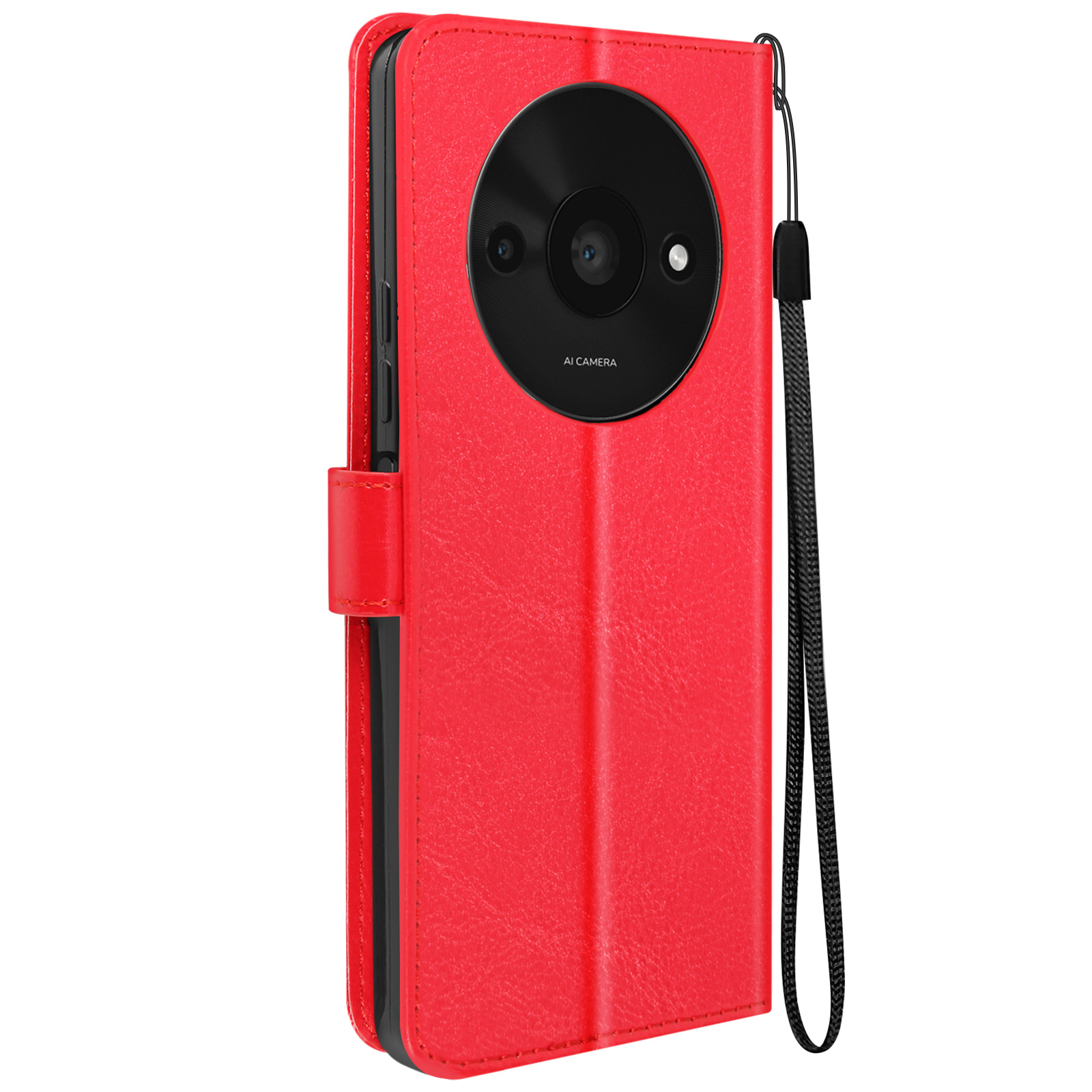 Mayaxess, Torbica s preklopom za Xiaomi Redmi A3 Zaščita z zapestnim trakom Večnamenska zaklopka, Rdeča