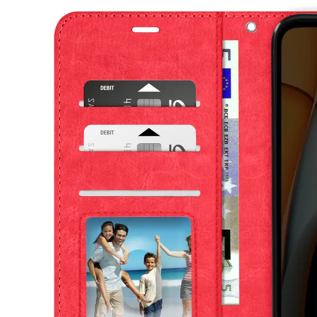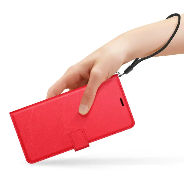 Rdeče ohišje Mayaxess za učinkovito in popolno zaščito vaše [ime naprave].. Prevlečen z imitacijo usnja, ki zagotavlja odličen učinek za uspešno preobrazbo telefona. Zavihek z magnetnim jezičkom, ki ga ohranja zaprtega in preprečuje nenamerno odpiranje. Vgrajen prostor za shranjevanje kartic, da jih imate vedno pri roki.