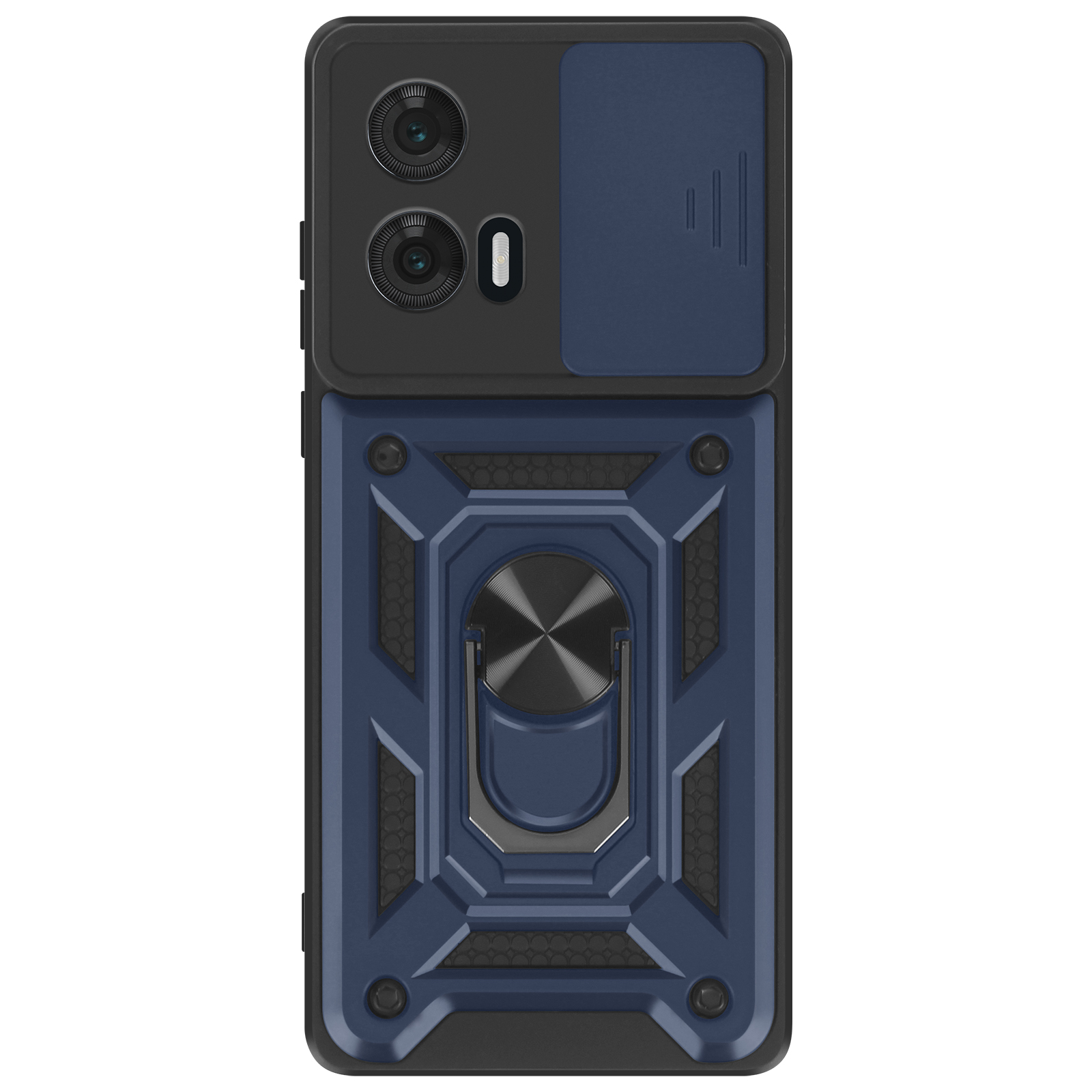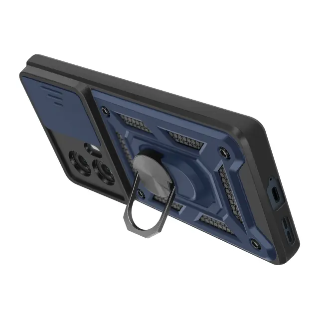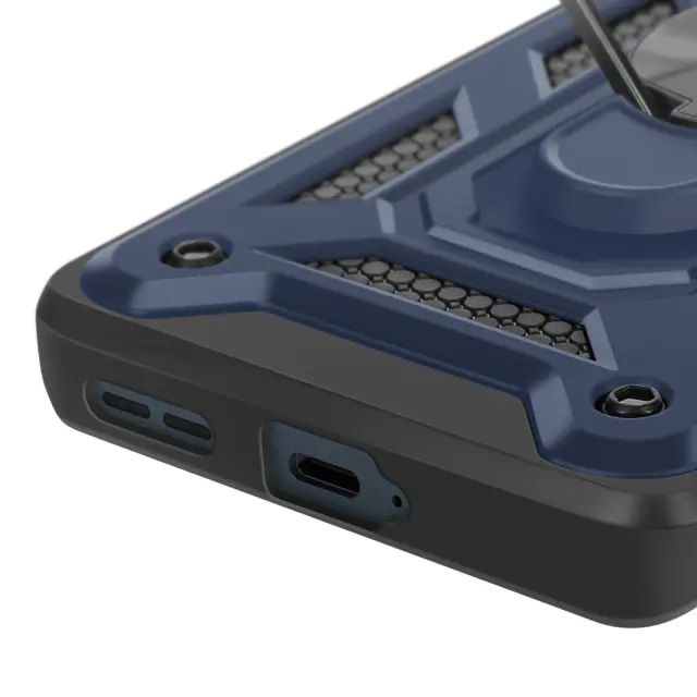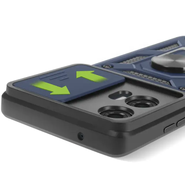 Polnočno modro ohišje iz dvomaterialnega materiala Mayaxess, vrhunska zaščita za vašo Motorolo Edge 50 Fusion. Izdelan je iz togega polikarbonata in prožnega silikonskega gela ter zagotavlja optimalno zaščito pred praskami in udarci.. Testirano po standardu MIL-STD-810G 516.6, kar zagotavlja varno zaščito pred padci. Drsni pokrov kamere za zaščito enote kamere pred praskami in udarci za večjo vzdržljivost.
