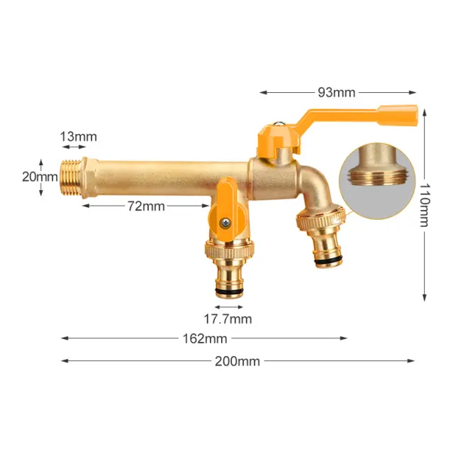 Podaljšana dolžina: Podaljšana dolžina žerjava zagotavlja dodaten doseg in vsestranskost, zaradi česar je idealen za različne aplikacije na prostem. Ne glede na to, ali morate cev priključiti na pralni stroj, zalivati vrt ali polniti velike posode, ta pipa ponuja udobje s svojim podaljšanim dosegom.