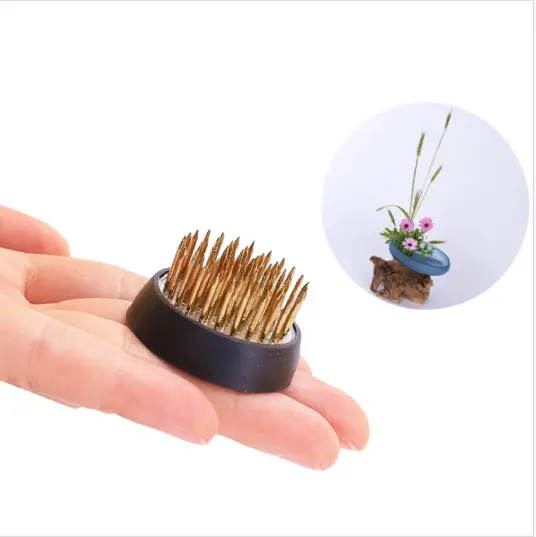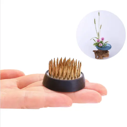 Medeninasta žabica z žebljički za ikebano, okrogla cvetlična žabica s premerom 34 mm s silikonskim dnom za aranžiranje cvetja