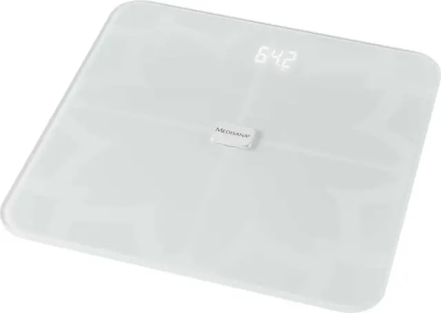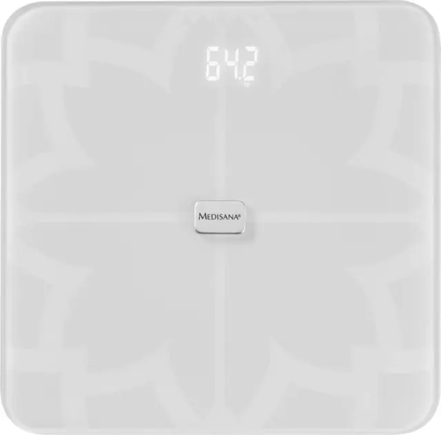 Medisana analitična tehtnica BS 450 Connect ws prenaša podatke prek Bluetooth® Smart na aplikacijo VitaDock+ za iOS in Android ter jih sinhronizira z VitaDock® Online. Omogoča udoben vklop z ''step on'' funkcijo ter meri težo, telesno maščobo, telesno vodo, mišično maso in kostno maso. Izračuna indeks telesne mase (BMI) in ima funkcijo analize dnevnega kaloričnega vnosa. LED zaslon je neviden in se prikaže samo med tehtanjem. Samodejno zazna do 8 uporabnikov, s 30 shranjenimi mesti za vsakega uporabnika. EAN: 4015588405112