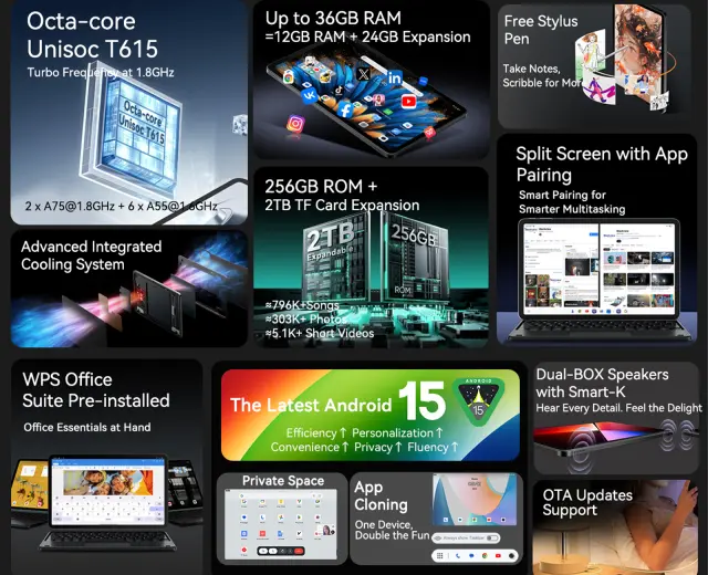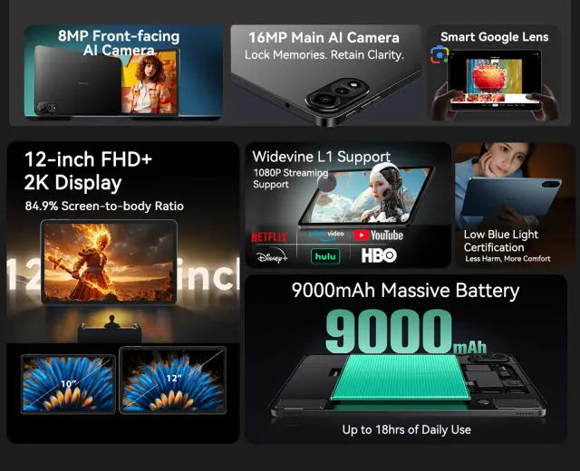 Tablični računalnik BLACKVIEW MEGA 2 30,5 cm (12"), 4G LTE, 12 GB RAM, 256 GB ROM, IPS 2K, Dual SIM, GPS, AI, + dodatki, zelen (Moss Green)