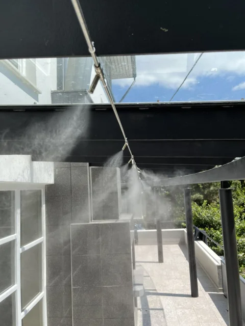 V hudem vročinskem valu vsi iščemo ohladitev, v notranjosti je rešitev klima, a seveda tudi radi posedimo na terasi. Z vodno-pršilnim sistemom za hlajenje ter megljenje se problem elegantno reši, poda dodatno vrednost poslovnemu objektu ali gostinskemu obratu, ter privabi še več strank kot sicer.