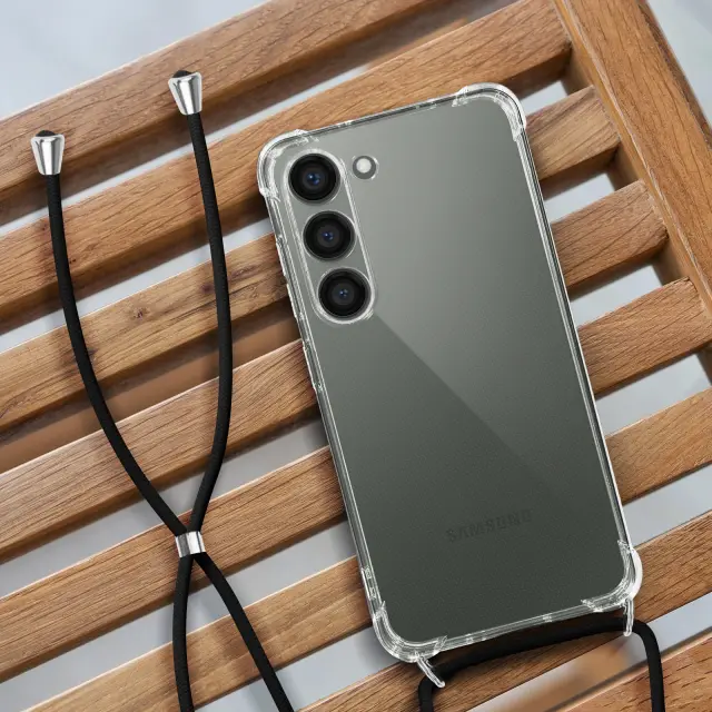 Zašcitite svoj Samsung Galaxy S23 in ga imejte vedno pri roki s to torbico z vrvico. Priložen je pleten najlonski trak dolžine 70 cm. Njegova prozorna površina ohranja prvotni videz mobilnega telefona.