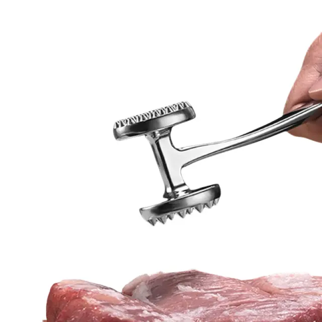 Dvostranska zasnova: To kladivo ima dvostransko glavo in učinkovito zmehča meso na eni strani, medtem ko je druga stran odlična pri sploščenju kotletov za enakomerno pečenje.