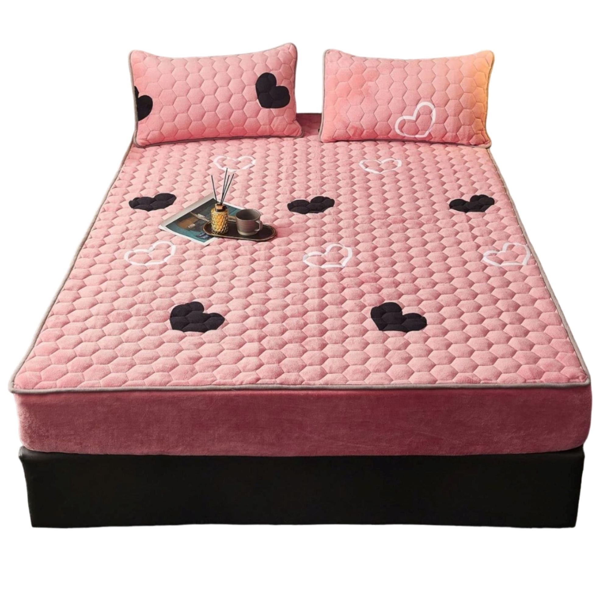 Mehek in eleganten komplet posteljnine (prevleka za vzmetnico + 2x prevleka za vzglavnik) | VELVETLUX 140 x 200 Roza s srčki