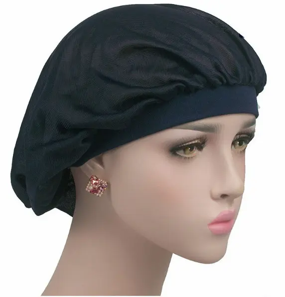 Mehka spalna kapa za dolge lase - udobna nočna kapa NavyBlue