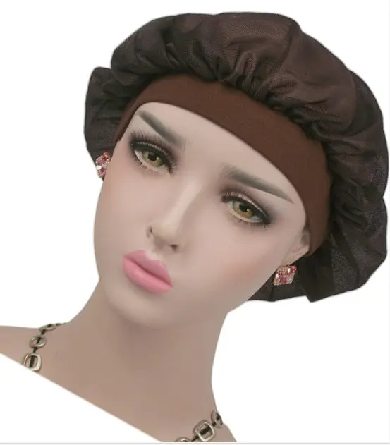 Mehka spalna kapa za dolge lase - udobna nočna kapa coffee