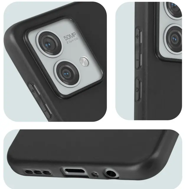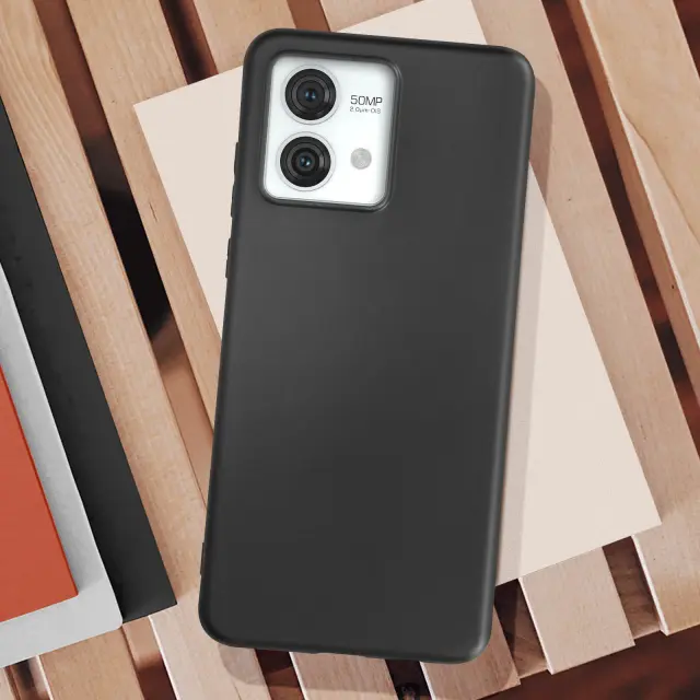 Mehka silikonska torbica za Motorola Moto G84. Zašcita Motorola Moto G84 Silicone Black odporna na udarce. Dvignjen zaslon in rob kamere za vecjo zašcito pred padci. Ovitek za Motorola Moto G84, dostopne funkcije.
