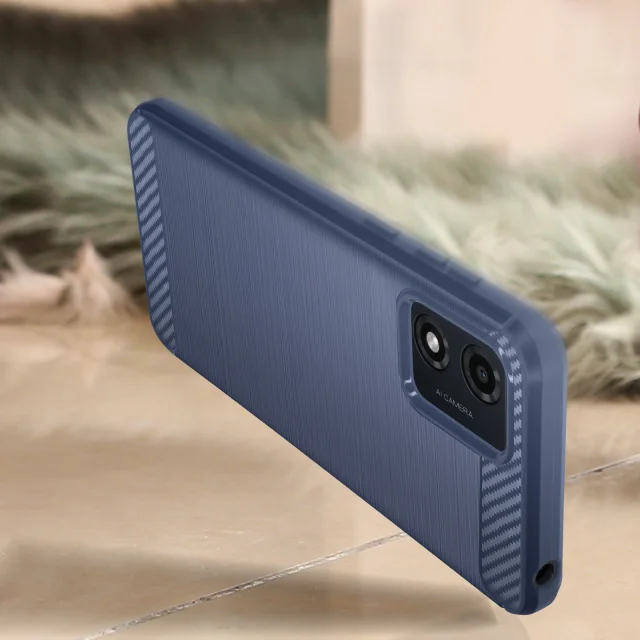 Mehka torbica za Motorola Moto E13, dizajn iz brušene kovine z ucinkom ogljika - polnocno modra