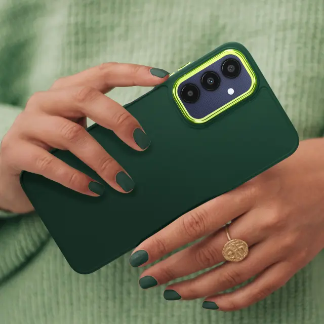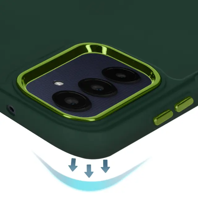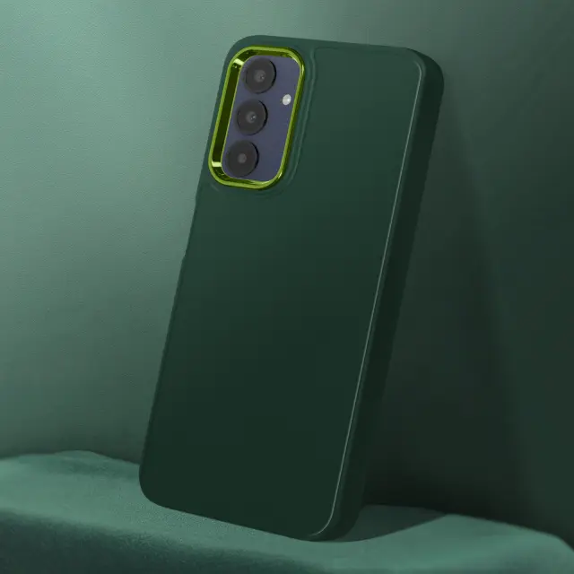 Mehka torbica za Samsung A25 5G - jelkasto zelen kovinski obris kamere, Temno zelena