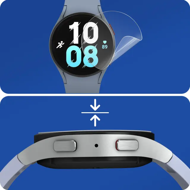 Zaščita zaslona, oblikovana za vašo Galaxy Watch 5, 44 mm. Hidrogelna zasnova, lastnosti proti mehurčkom in madežem. Tanek in lahek za dodajanje minimalne debeline po namestitvi. Tipna občutljivost vaše pametne ure je popolnoma ohranjena za običajno uporabo.