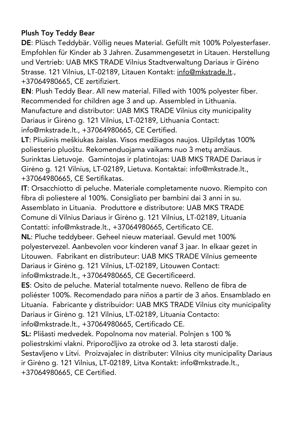Podatki o proizvajalcu vključujejo informacije (naziv, naslov, državo in elektronski naslov) povezane s proizvajalcem izdelka.