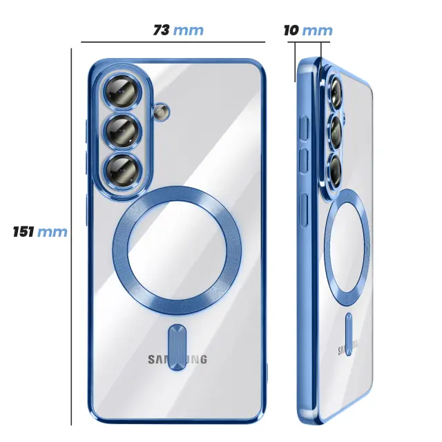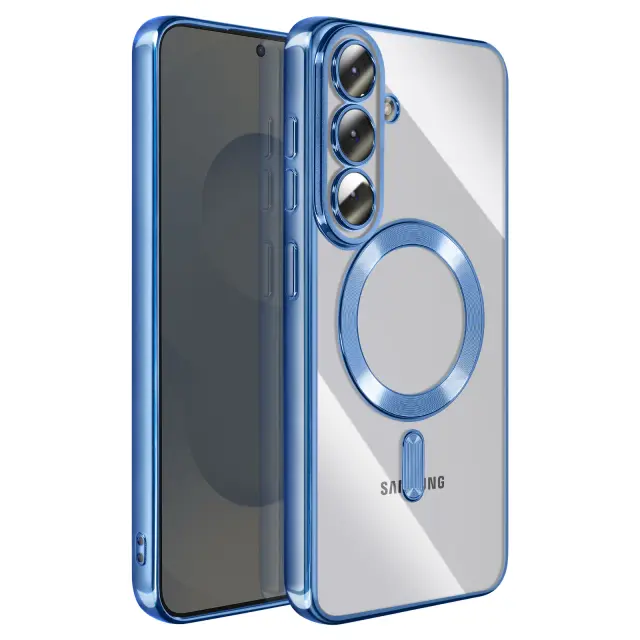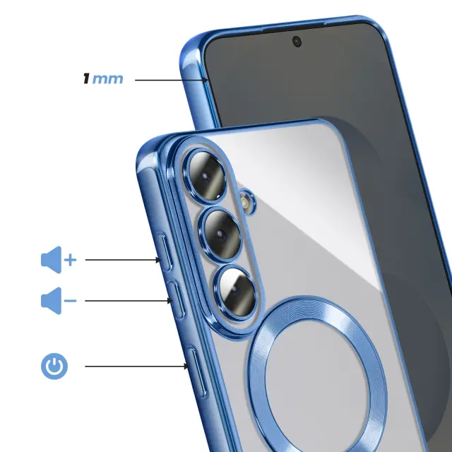 Mehko ohišje MagSafe za Galaxy S26, odporno na udarce, s kromiranim robom, Modra