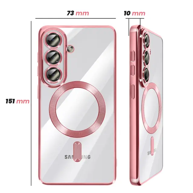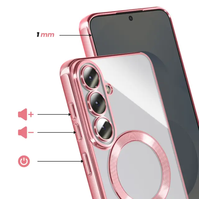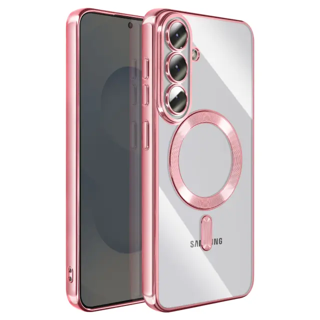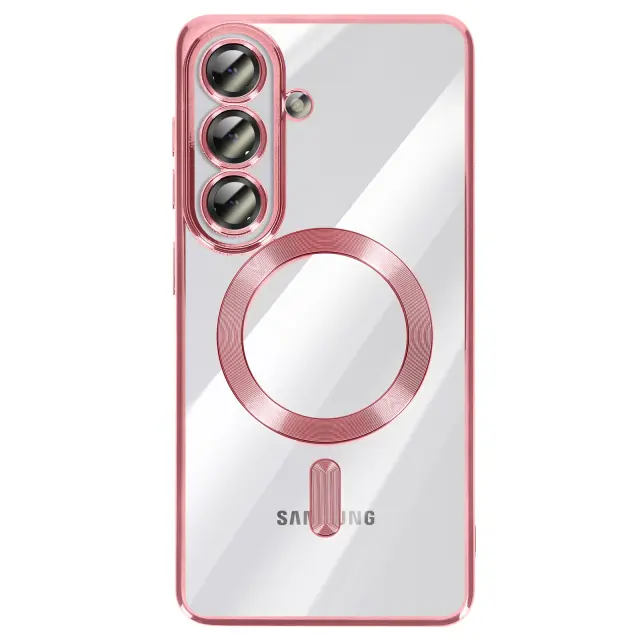Mehko ohišje MagSafe za Galaxy S26, odporno na udarce, s kromiranim robom, Fuksija
