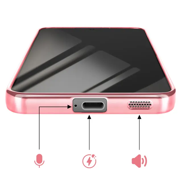 To ohišje za Samsung Galaxy S26 ima prozorno silikonsko hrbtno stran s kromirano obrobo.. Prilagodljiv material absorbira lahke udarce in omogoča enostavno namestitev in odstranitev školjke.. Vgrajen magnetni obroč omogoča združljivost etuija z dodatki MagSafe in brezžičnim polnjenjem. Dvignjeni obročki okoli leč omejujejo neposreden stik med fotografskim modulom in ravnimi površinami..