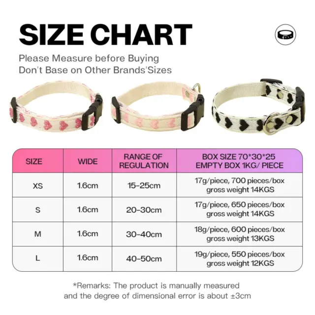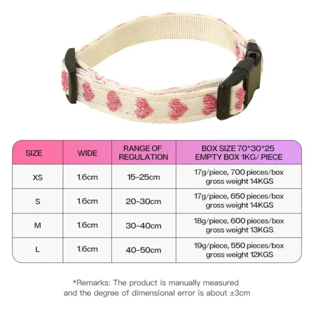 Nastavljivost: Nastavljiv dizajn v treh velikostih S, M in L omogoča natančno prileganje, ko se ljubljenček razvija ali pri menjavi opreme. Preprosta nastavljiva zaponka in slog omogočata hitro prilagoditev; lastnik lahko z mehkim metrom izmeri vrat in pusti ustrezno zrahljanost za udobje ter varnost. V scenariju hitrega jutranjega sprehoda ali učenja osnovnih ukazov ovratnik omogoča hitro in varno prilagoditev brez zapletov.