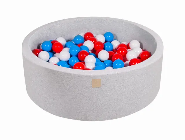 MeowBaby® Bazen z žogicami, 90x30 cm z 200 žogicami, bombaž, svetlo siva: rdeča/bela/modra