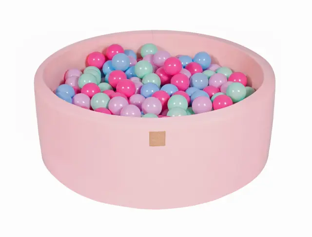 MeowBaby® Bazen z žogicami, 90x30 cm z 200 žogicami, bombaž, svetlo roza: mint/modra/svetlo roza/pastelno roza