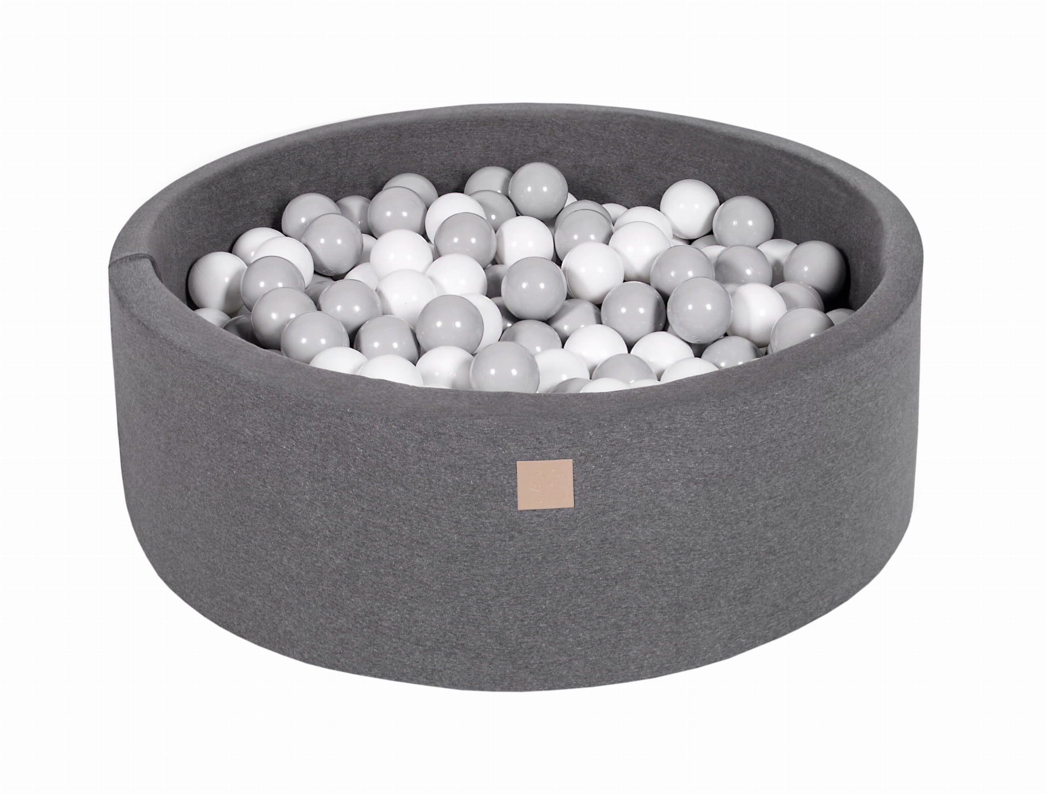 MeowBaby® Bazen z žogicami, 90x30 cm z 200 žogicami, bombaž, temno siva: bela/siva