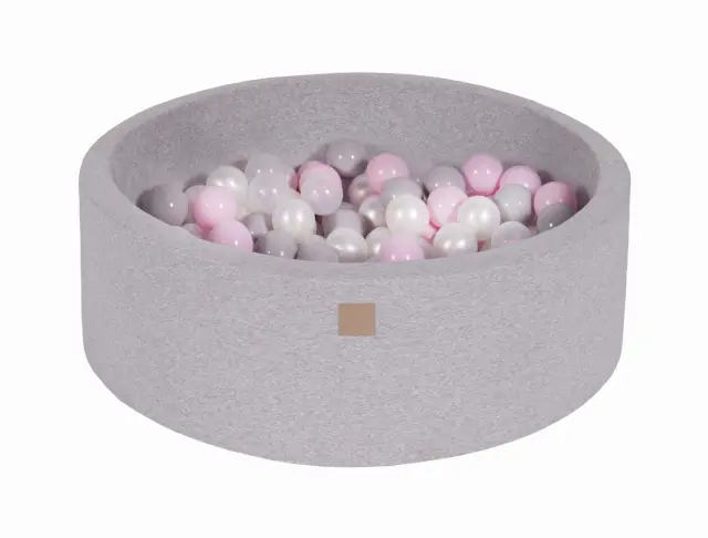 MeowBaby® Bazen z žogicami, 90x30 cm z 200 žogicami, bombaž, svetlo siva: prozorna/siva/biserna/pastelno roza