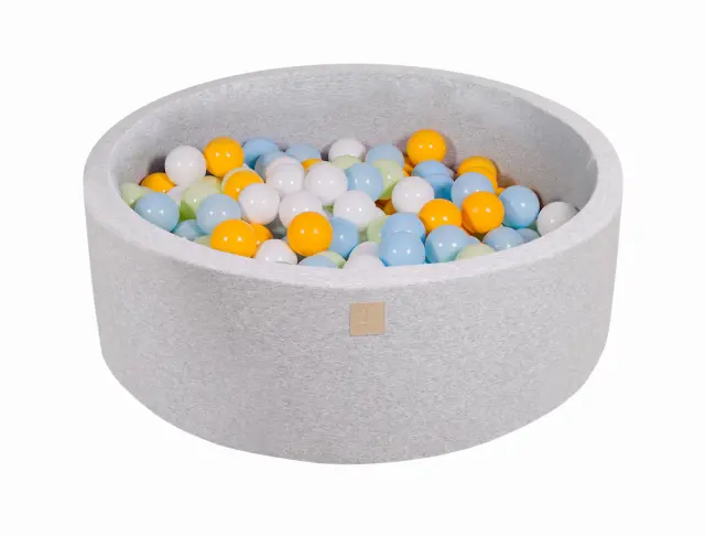 MeowBaby® Bazen z žogicami, 90x30 cm z 200 žogicami, bombaž, svetlo siva: bela/rumena/svetlo zelena/modra