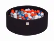 MeowBaby® Bazen z žogicami, 90x30 cm z 200 žogicami, bombaž, črna: biserno modra/biserno bela/oranžna/srebrna