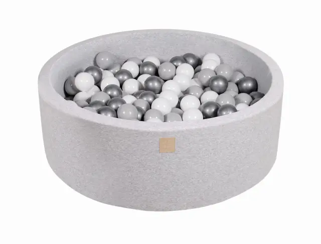 MeowBaby® Bazen z žogicami, 90x30 cm z 200 žogicami, bombaž, svetlo siva: srebrna/siva/bela