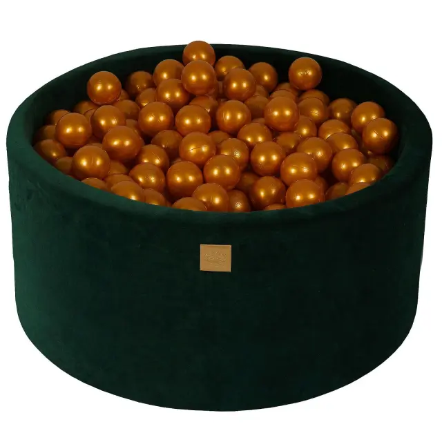 MeowBaby® Bazen z žogicami, 90x40 cm s 300 žogicami, žamet, temno zelena : zlata