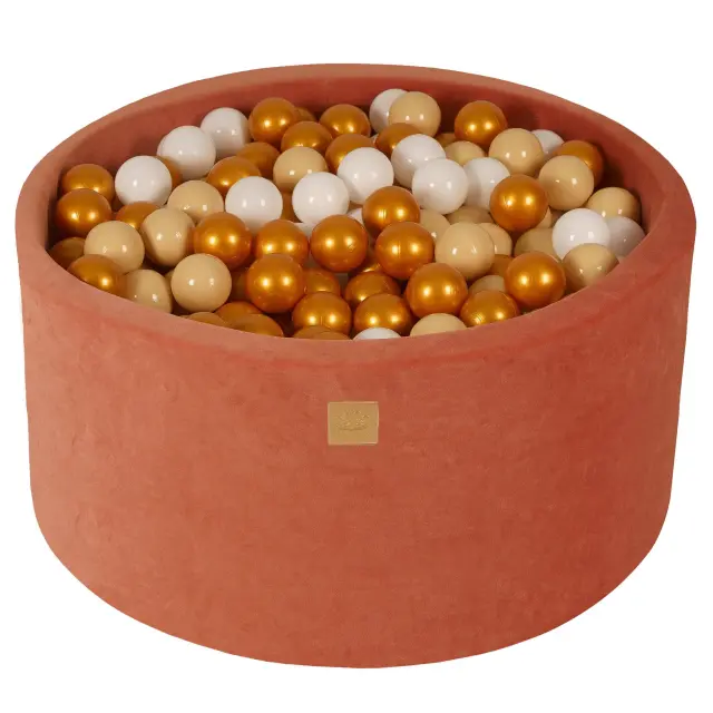 MeowBaby® Bazen z žogicami, 90x40 cm s 300 žogicami, žamet, marsala rdeča: bela/bež/zlata