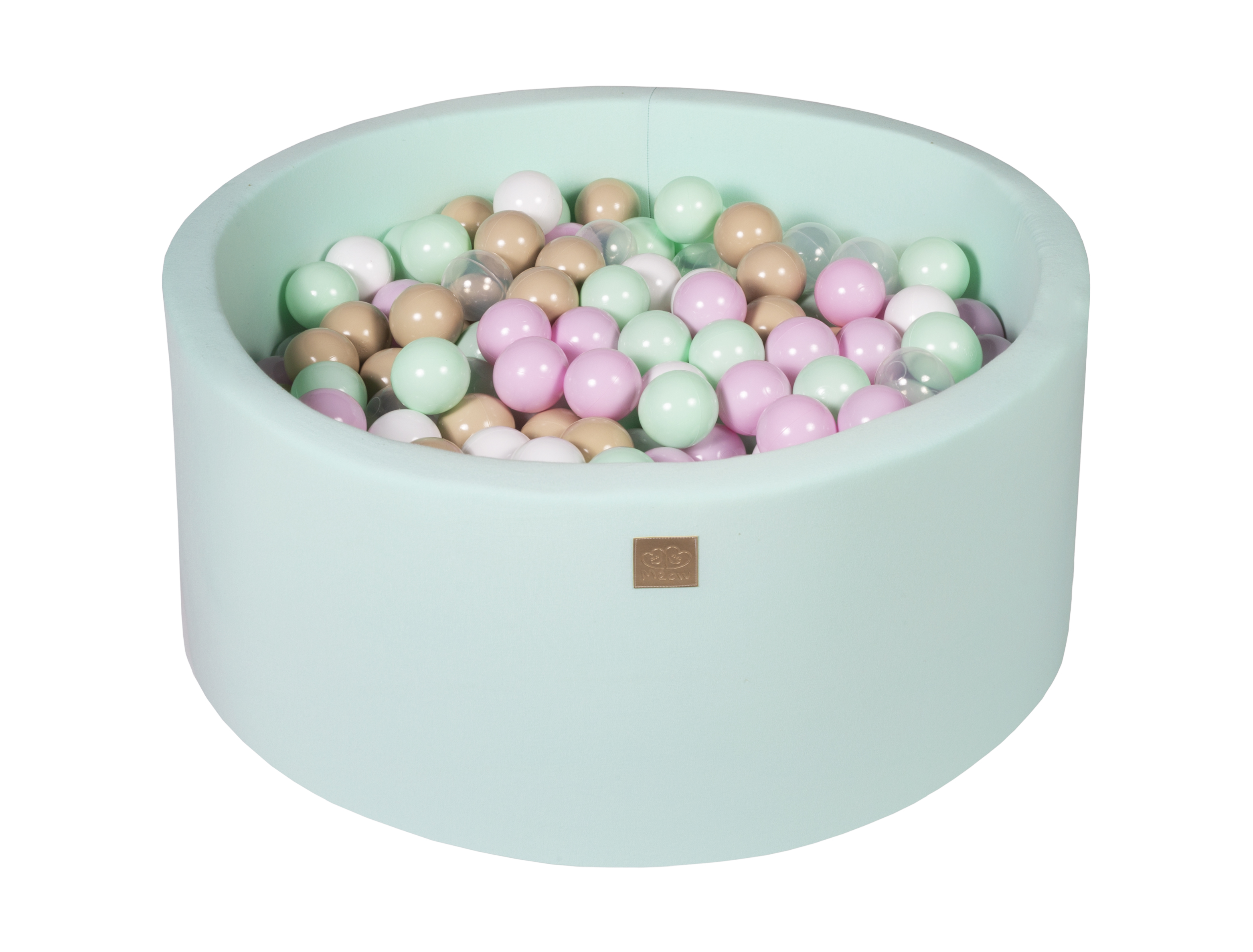 MeowBaby® Bazen z žogicami, 90x40 cm s 300 žogicami, bombaž, mint: pastelno roza/prozoren/bež/bel/mint