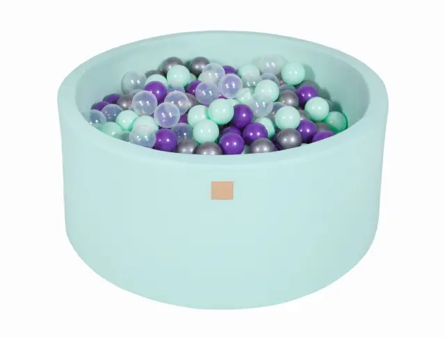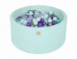 MeowBaby® Bazen z žogicami, 90x40 cm s 300 žogicami, bombaž, mint: mint/prozoren/srebrn/vijoličen