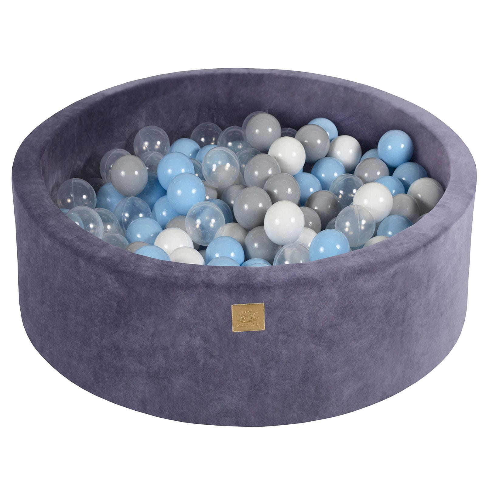 MeowBaby® Bazen z žogicami, 90x30 cm z 200 žogicami, žamet, sivo-moder : Baby modra/siva/bela/prozorna