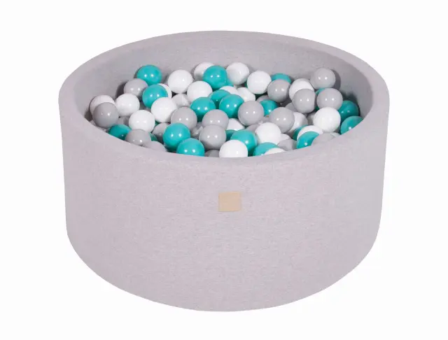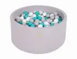 MeowBaby® Bazen z žogicami, 90x40 cm s 300 žogicami, bombaž, svetlo siva: turkizna/siva/bela