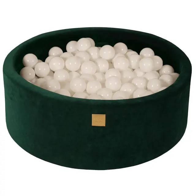 MeowBaby® Bazen z žogicami, 90x30 cm z 200 žogicami, žamet, temno zelena : bela