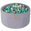 MeowBaby® Bazen z žogicami, 90x40 cm s 300 žogicami, žamet, svetlo siva: bela/siva/turkizna