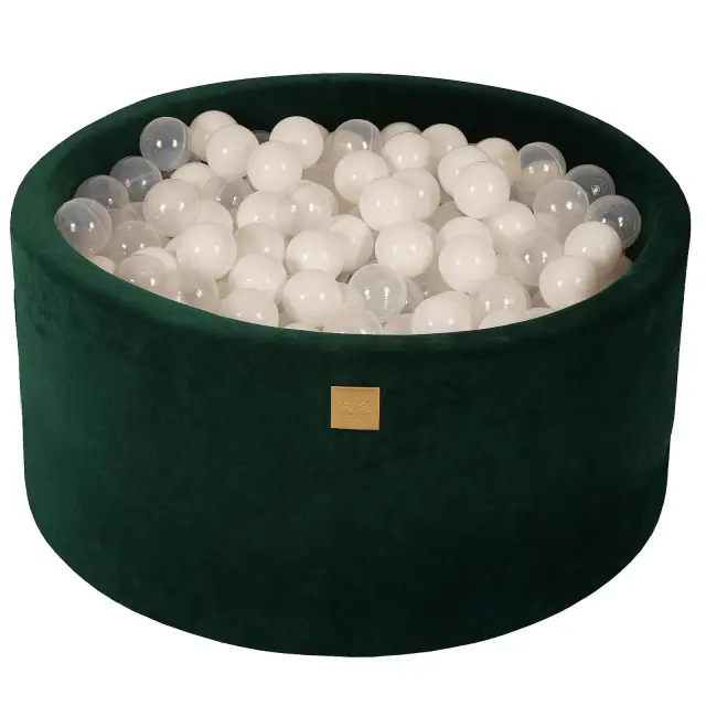 MeowBaby® Bazen z žogicami, 90x40 cm s 300 žogicami, žamet, temno zelen: prozorno/bel