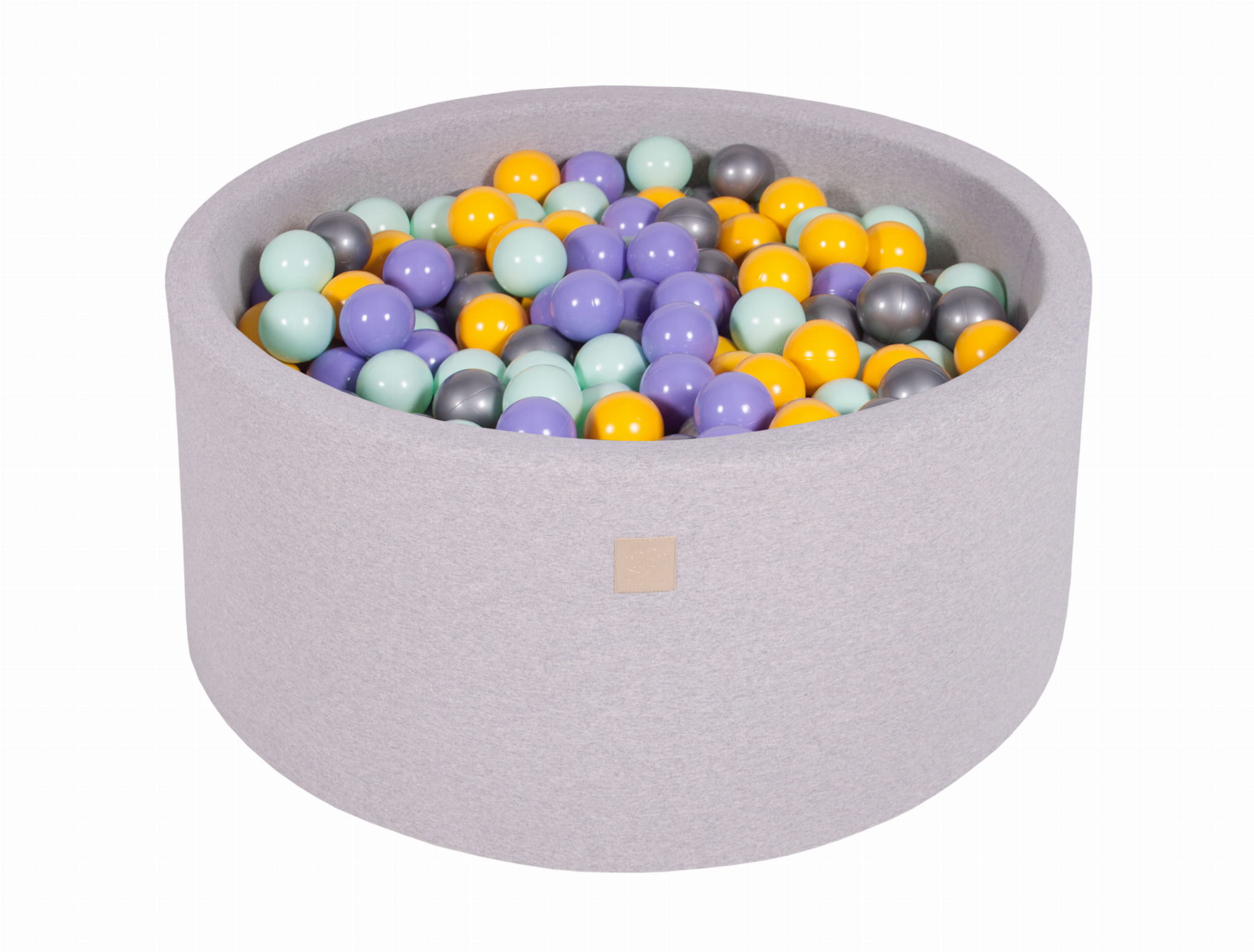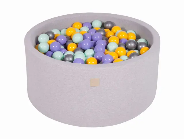 MeowBaby® Bazen z žogicami, 90x40 cm s 300 žogicami, bombaž, svetlo siva: Heather/Yellow/Mint/Silver