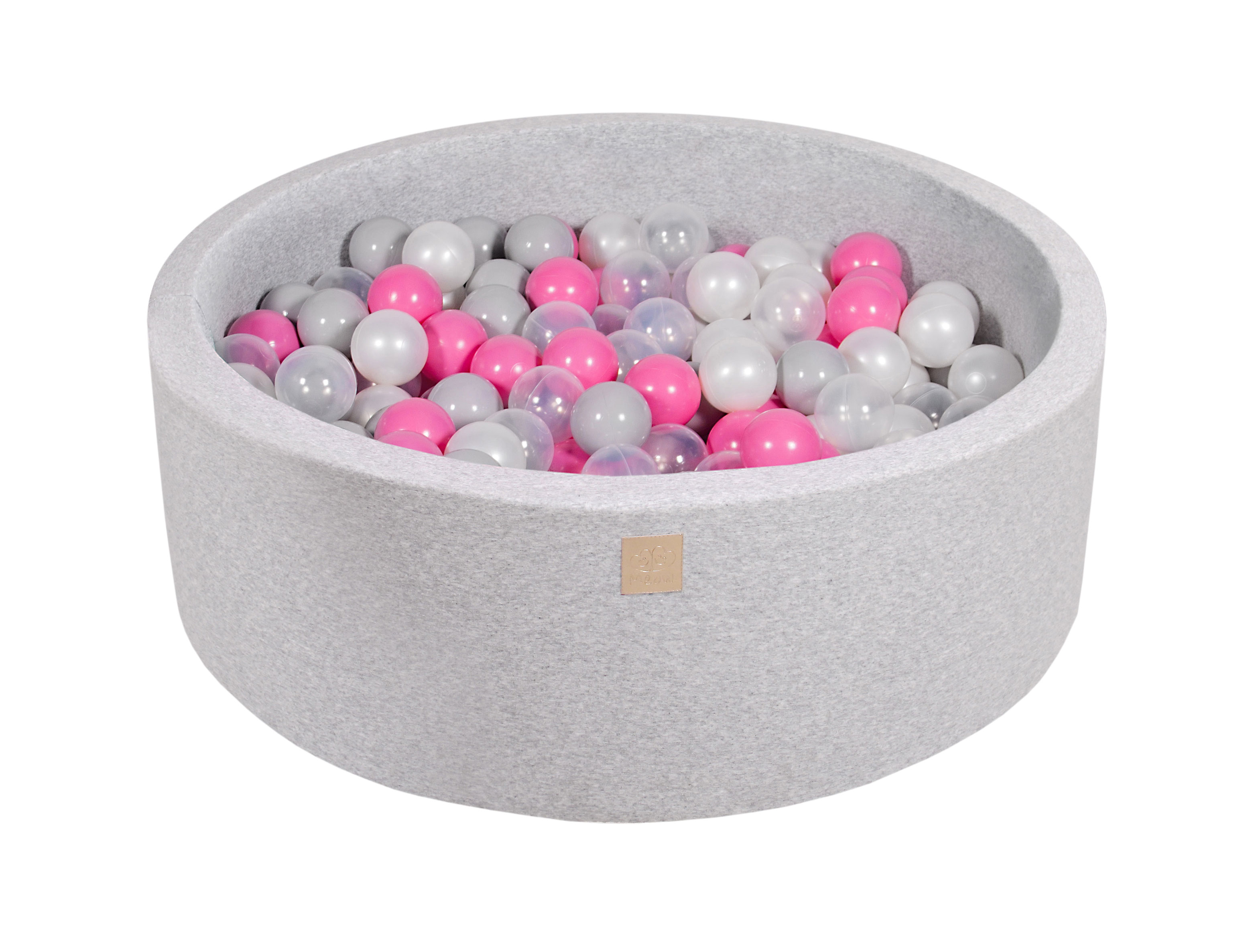 MeowBaby® Bazen z žogicami, 90x30 cm z 200 žogicami, bombaž, svetlo siv: prozoren/svetlo roza/biserno/siv