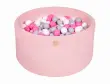 MeowBaby® Bazen z žogicami, 90x40 cm s 300 žogicami, bombaž, svetlo roza: siva/bela/svetlo roza