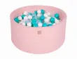 MeowBaby® Bazen z žogicami, 90x40 cm s 300 žogicami, bombaž, svetlo roza: bela/prozorna/turkizna