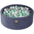 MeowBaby® Bazen z žogicami, 90x30 cm z 200 žogicami, žamet, sivo-moder: bela/siva/mint
