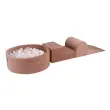 Mehke in varne – te penaste igrače so izdelane iz nestrupenih materialov in zagotavljajo varno igralno okolje za majhne otroke. Večnamensko - Plišaste živali se lahko uporabljajo kot gradniki, plezalne strukture in elementi za bazen z žogicami. Močna in stabilna - pena visoke gostote, uporabljena v teh penastih gradnikih, zagotavlja vzdržljivost, zaradi česar so dolgoročna naložba v otroško sobo. Enostavno čiščenje - Penaste gradnike je enostavno obrisati, zaradi česar so dodatek za vsako igralno sobo, ki ga je enostavno očistiti. Razvijajo motorične sposobnosti - Soft Play pomaga majhnim otrokom izboljšati ravnotežje, koordinacijo in velike motorične sposobnosti skozi aktivno igro. Penasti igralni set MeowBaby z mini bazenom z žogicami - Igralni bazen z 200 žogicami. Zdaj lahko doma ustvarite otroško igrišče! Naše igralne kocke ne le spodbujajo otroško domišljijo, ampak tudi učijo ustvarjalnega razmišljanja. Modularni set se lahko uporablja tako za zabavo kot tudi za vadbo in ustvarjanje poligonov z ovirami. Posamezni elementi se lahko uporabljajo kot puf ali sedež. Antialergijsko poliuretansko peno, uporabljeno pri izdelavi kompleta, odlikuje majhna teža in visoka odpornost na deformacije, zaradi česar je izdelek varen za otroke in hkrati izjemno praktičen. Posamezni bloki so lahki, zato jih je mogoče enostavno prestaviti na druga mesta. Vsi elementi kompleta imajo snemljivo prevleko, ki omogoča enostavno pranje v pralnem stroju in ohranja čistočo oviratlona. V kompletu je tudi mini žoga z barvnimi žogicami po izbiri. Igralni set iz pene je odličen element za otroške sobe, otroške sobe in igralnice, predvsem pa zaradi izjemno prijetne prevleke na dotik. Preprost in minimalističen dizajn tega izdelka se popolnoma prilega bivalnemu prostoru. Izdelek je namenjen otrokom od 1 do 3 let in se lahko uporablja le pod nadzorom odrasle osebe. Penasti igralni set - podrobnosti o izdelku: - Set je sestavljen iz 3 elementov in žogice z 200 žogicami - Prevleka je pralna v pralnem stroju na 30 °C Mere: - Širina posameznega modula: 45 cm - Višina najvišjega modula: 30 cm - Dolžina konstrukcije z bazenom: 235 cm - Dimenzije bazena: 90 cm x 30 cm