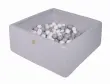 MeowBaby® kvadratni bazen z žogicami, 90x90x40 cm s 300 žogicami, bombaž, svetlo siva: sivo/bela