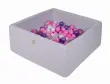 MeowBaby® kvadratni bazen z žogicami, 90x90x40 cm z 200 žogicami, bombaž, svetlo siva: temno roza/vijolična/prozorna/siva